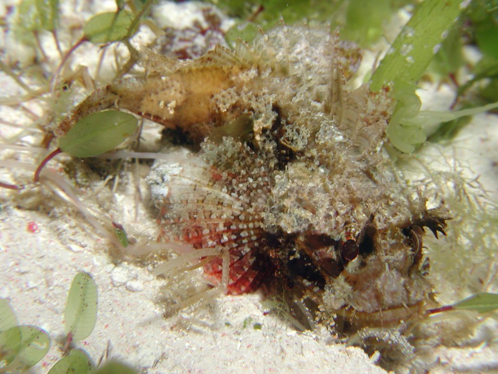 カサゴの仲間はすごく獰猛に見えるときと、愛嬌たっぷりに見えるときがありますが、これは後者で、愛犬のナナチャンが腹ばいになってグウタラしているときを連想させてとても可愛く思えます。