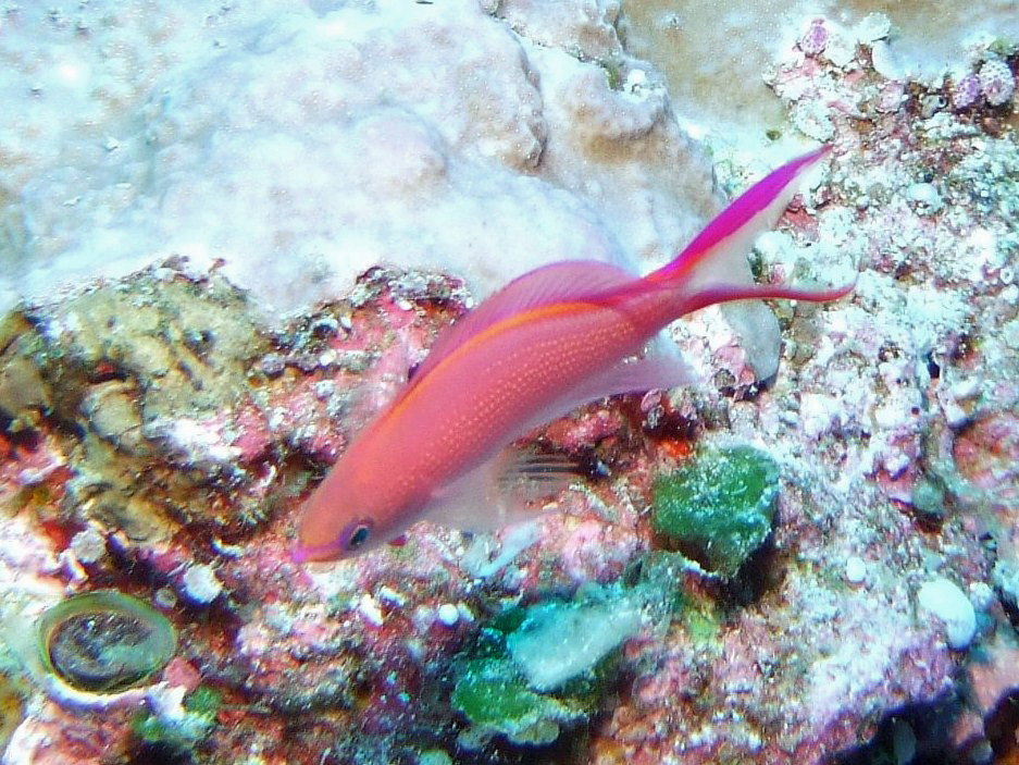 矛盾があるのが気になりますが、ボク以外に誰も気にする人はいないと思うので置いておくとして、この魚もハナダイの仲間の例に漏れず背鰭や尾鰭が優雅になびいて見ている者をうっとりさせます。