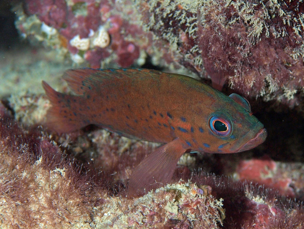 幼魚です。青い斑紋が成魚に比べてだいぶ少ないですが、これから徐々に増えていくのでしょう。