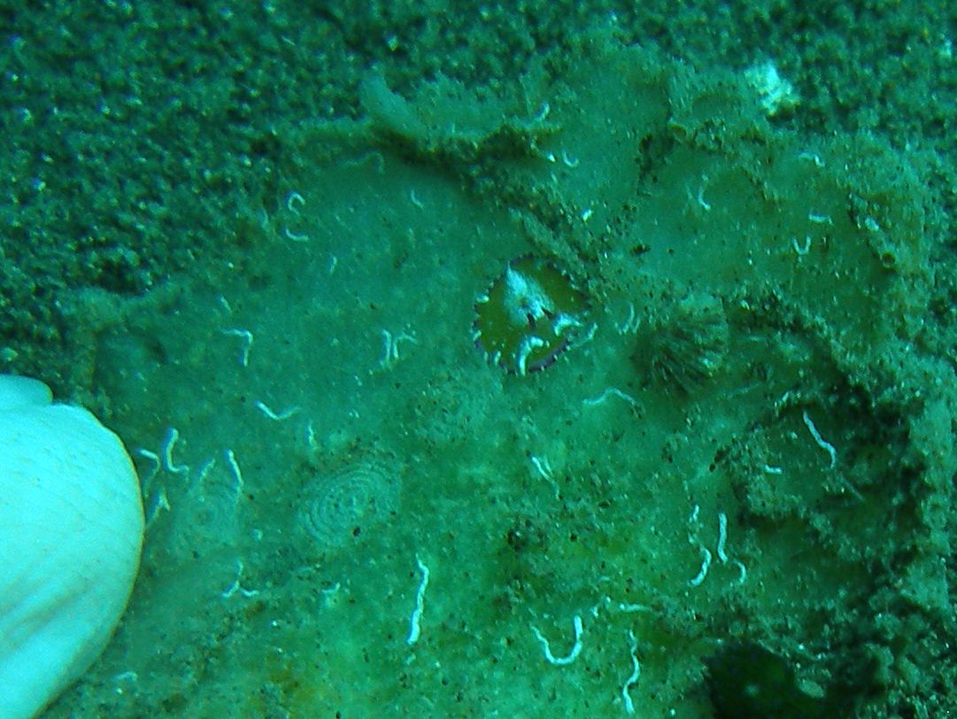 2本の触角があるところはウミウシとしか考えられないのですが、種類については図鑑やネットでいくら調べても似たような種類を探し出すことができず、皆目見当が付きません。ウミウシじゃないのかなー?ウーーーーン・・・
