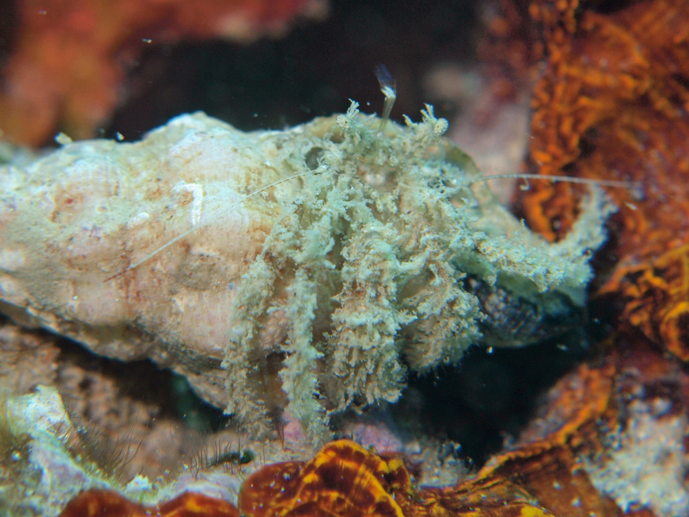 追記 2020/03/25 これまで不明種(異尾類-25)としていましたが、ヤドカリパーク管理人さんの指摘を受けてDecaphyllus litoralisに訂正しました。こんな分かりにくい写真でも同定できる眼力に驚嘆しました。