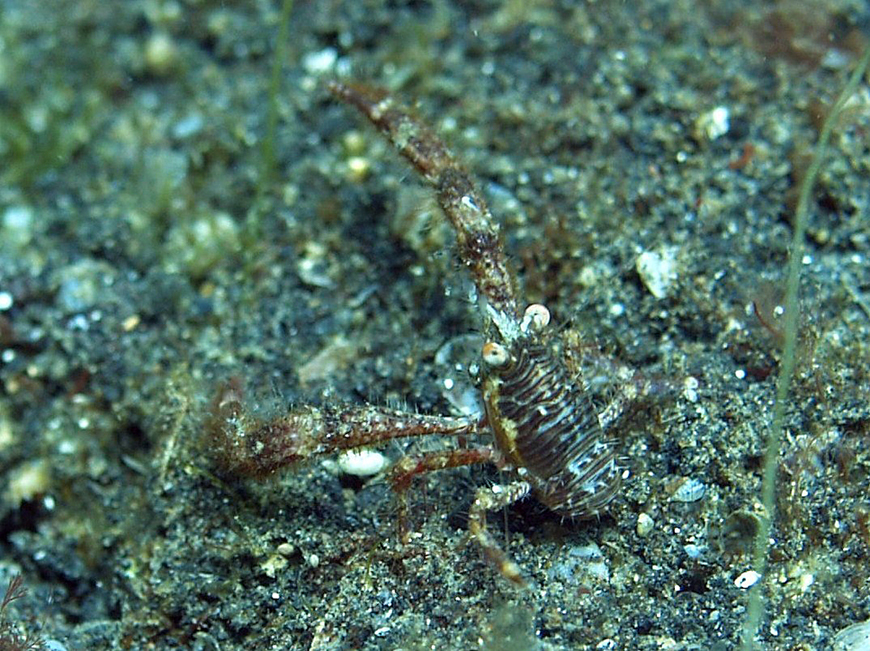 「World Atlas of Marine Faunna」 Rudie H Kuiter、Helmut Debelius (2009年 IKAN-Unterwasserarchiv)の200ページに写真が掲載されていて、かなり似ているのですが、違いが一点あって、こちらの被写体はすべての脚に毛が生えているのですが、図鑑の方はほとんどツルツルに見えます。