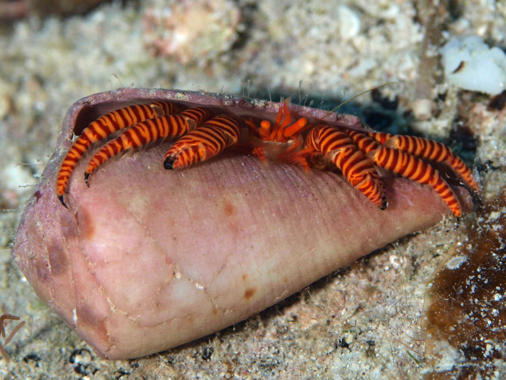 撮影 2008/12/02 沖縄県 竹富島 掲載 2013/05/28 ⇒異尾類・シャコの仲間 体色の濃いタイプの写真が撮れたので追加しました。なんだかやけにふてぶてしい印象ですが、その実態は極めつきの臆病者です。
