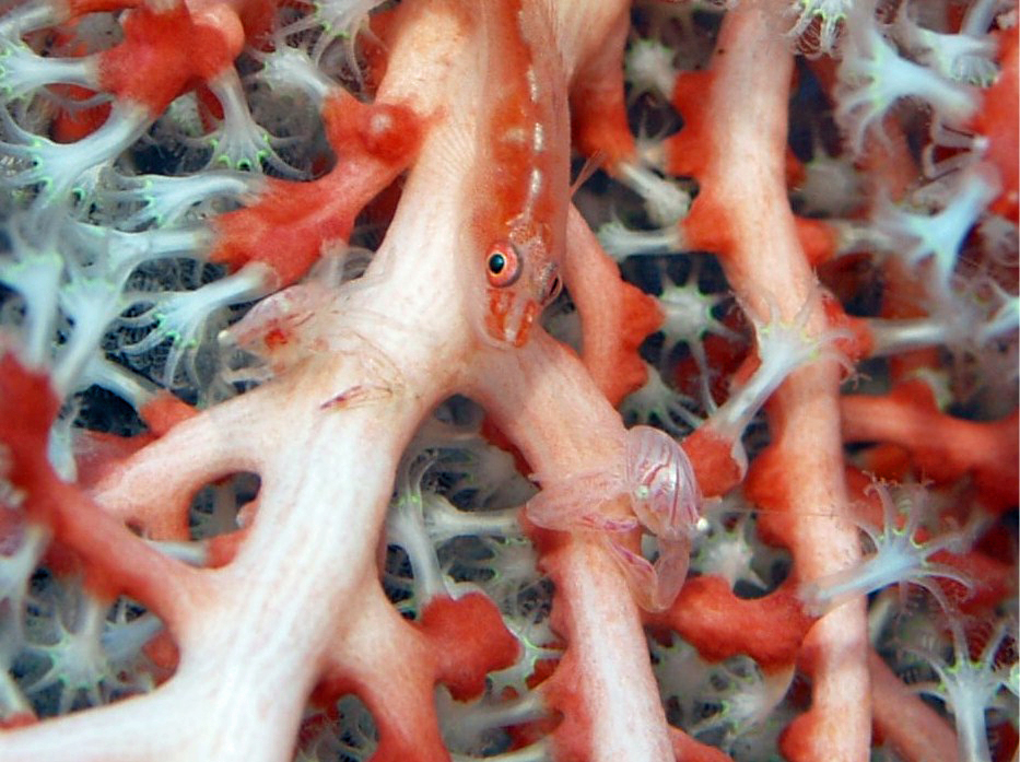 前者の解説によると、体長0.8cm以下で体色は宿主となっているソフトコーラルの色に合わせて変化するそうです。