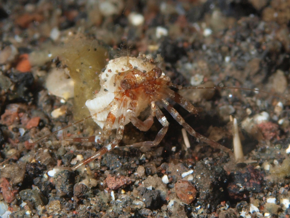 当初はオオエビスヤドカリだと思っていましたがよくよく見ると違っていて種不明としましたが、『ヤドカリ』 有馬啓人 (2014年初版 誠文堂新光社)を参照すると、エビスヤドカリ属の1種-1とかなり似ています。