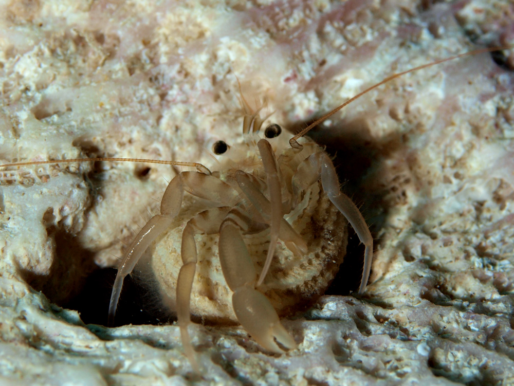 右はさみ脚が大きいのでホンヤドカリ科ではあります。なんとなくで、根拠はないけれど、ヒメホンヤドカリ属あたりかなあ。