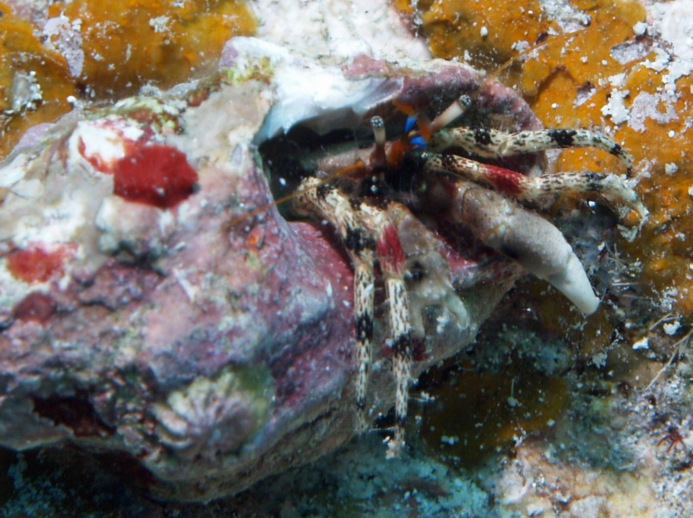 他にもいくつか特徴がありますが、それらを気にしなくても赤い黄帯一つで種の同定ができてしまうという、日ごろ同定に苦労している者にとってはまことに嬉しいヤドカリさんです。