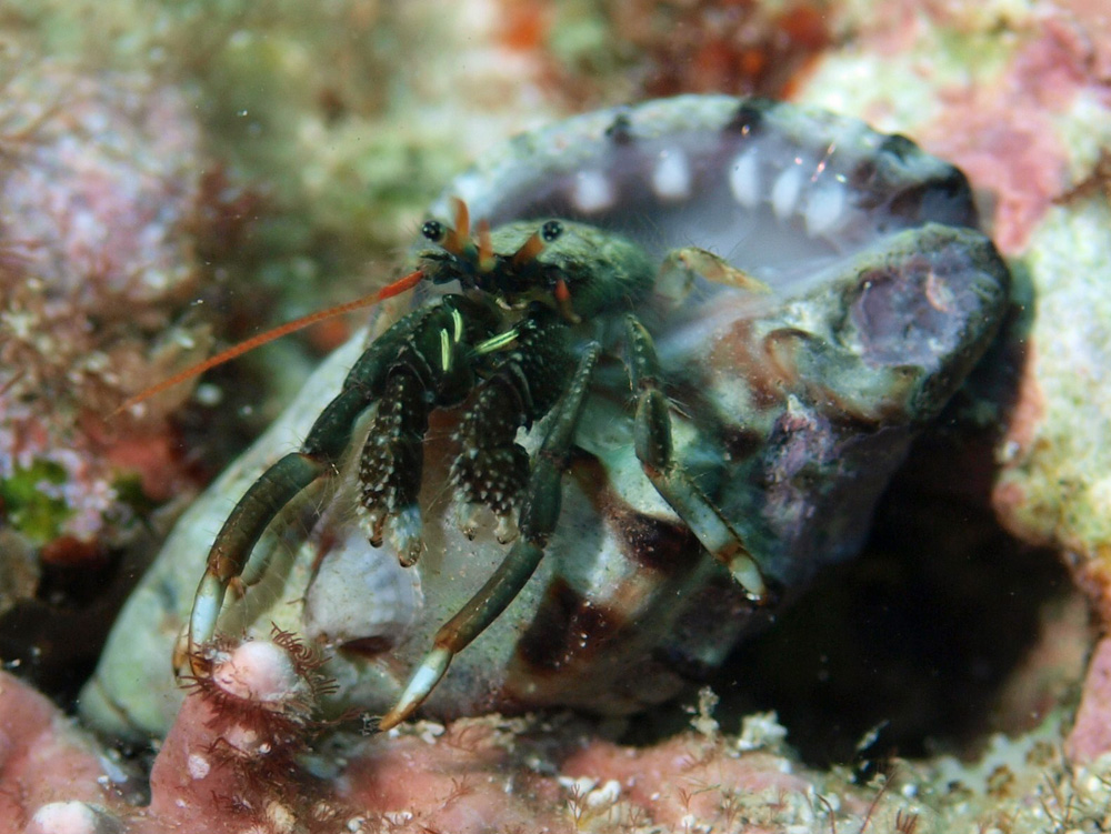 はさみ脚は三角形のトゲトゲが沢山あって強そうに見えますが、ヤドカリサイズとあっては怖がる相手はあまりいないでしょう。