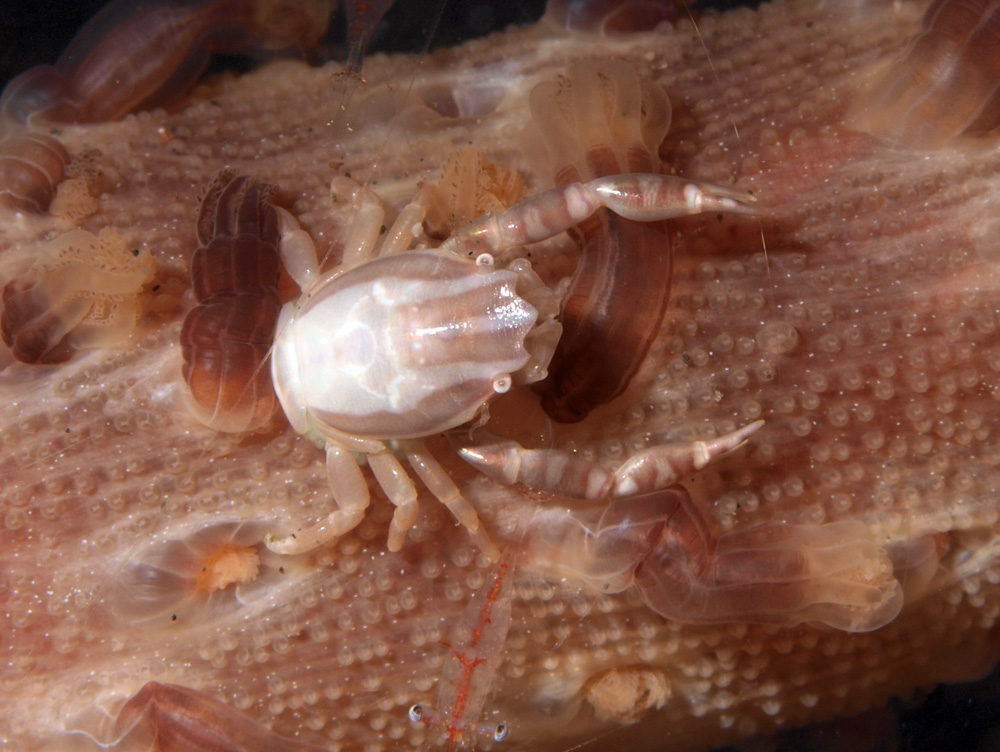 和名のとおり、ウミサボテンにくっついていました。磁器のような艶々した光沢です。噛むと硬いんでしょうかね?