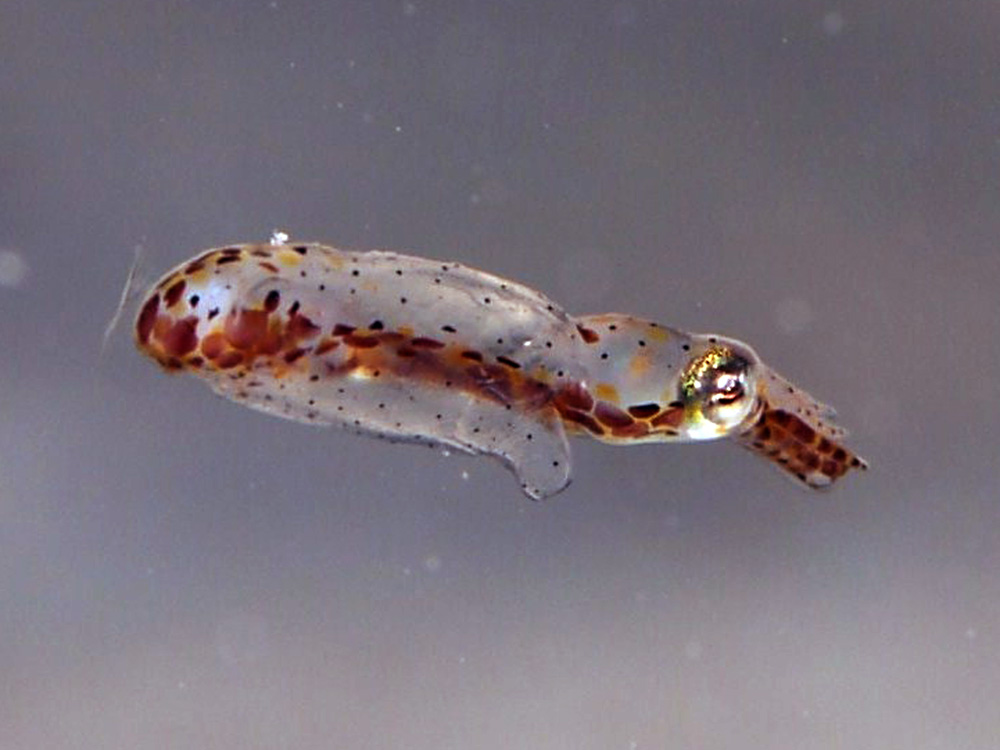 水中目視で2cmくらいの小型のイカでした。小さいだけに泳いでいるシーンを写真に収めるのは、ボクにとって至難の業です。なので、ピントピッタリというわけにはいきませんが、マアこの程度撮れればボクの基準では「合格」となります。