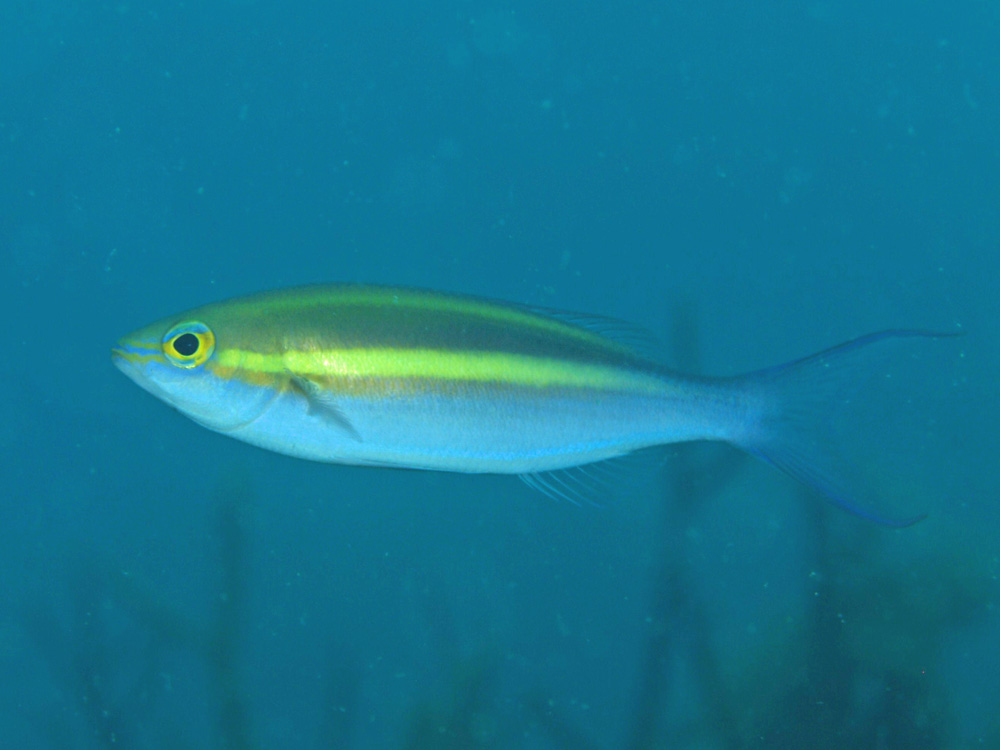 撮影 2008/07/08 沖縄県 石垣島 掲載 2013/01/10 ⇒イトヨリダイの仲間 水中でみると先が長く伸びている尾ひれがなびいて、とても優雅な魚でした。人間が怖くないのか、かなり近づいたのにおびえる様子もなくボクを観察していました。