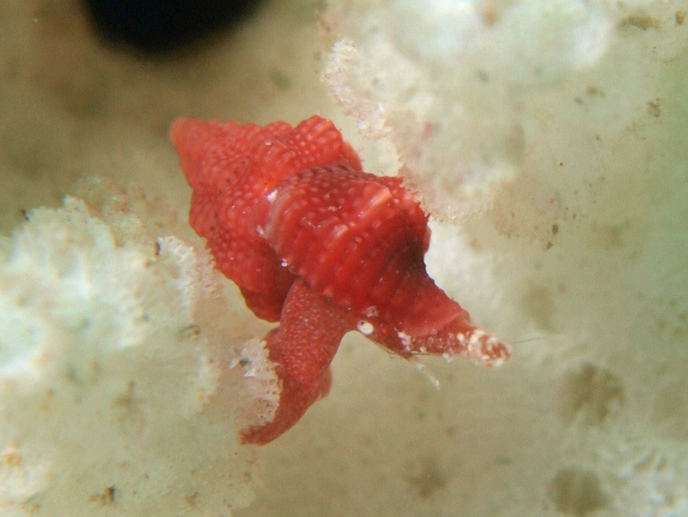 「日本近海産貝類図鑑」 奥谷喬司 (2000年初版 東海大学出版会)掲載写真よりずーっと赤みが強くて、和名通りの個体でした。