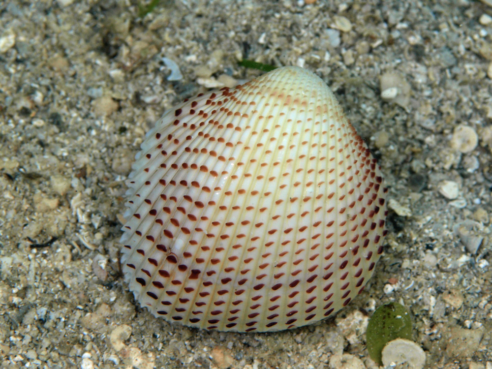 撮影 2008/10/17 沖縄県 石垣島 掲載 2013/05/15 ⇒貝の仲間 この和名は瓦ぶきの屋根を連想して付けたと想像していますが、そのとおり、規則正しく並んだ瓦がスッキリ感をもたらしています。