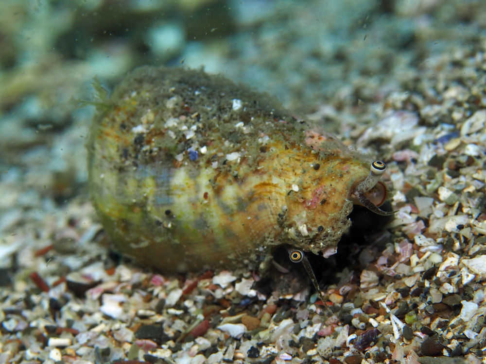 「日本近海産貝類図鑑」 奥谷喬司 (2000年初版 東海大学出版会)にはSL:6cmとありますが、水中で見たときは10cm以上ある大きな貝に見えました。