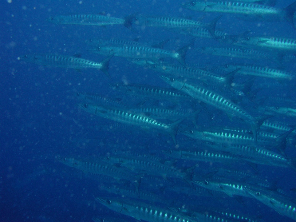 単体のバラクーダ(オニカマス)は何回か見たことがありますが、群は一度も見たことがなく、このときはバラクーダとギンガメ狙いだというので、小物好きにもかかわらずバリカサグに遠征しました。