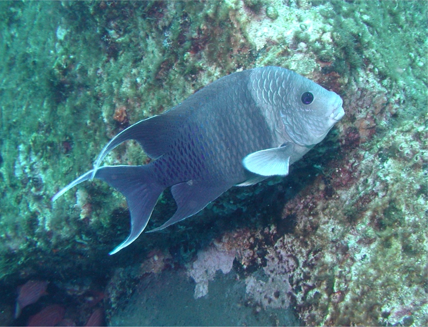 東太平洋の固有種で、スズメダイの仲間としては最大級で30cmになるそうです。成魚は頭部が胴部よりも薄いグレーで白っぽく見えるせいか、どことなく齢古びたお爺さんに見えてしまうのはボクだけでしょうか。