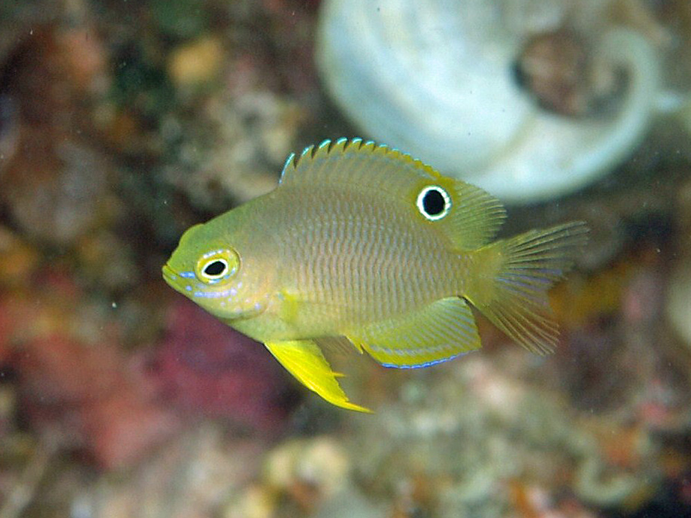 撮影 2008/08/10 沖縄県 石垣島 掲載 2013/02/16 ⇒スズメダイの仲間 既掲写真と同じく幼魚ですが横から撮れたので差し替えようとして、既掲写真があまりにも可愛いので差し替えをやめて追加しました。