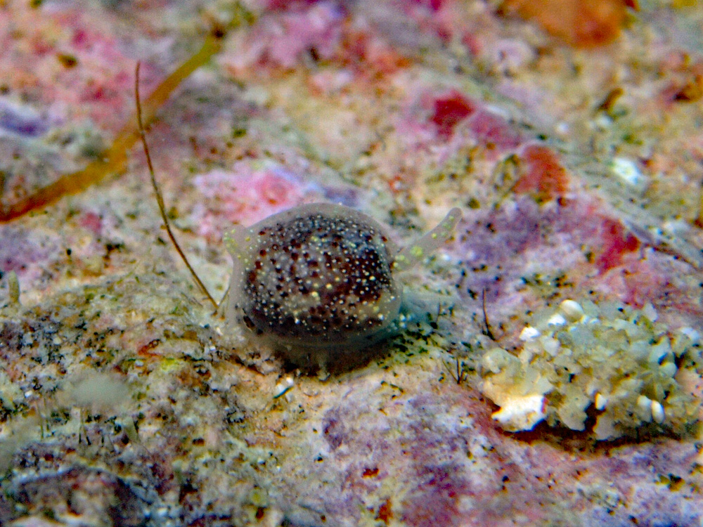 この科のウミウシは全般にサイズが小さめなのですが、その中でもさらに小さくて2〜3mmほどしかありませんでした。そのために、撮れたのはやっとこの程度。写りは小さいしピントも甘々ですが、ボクの腕とカメラの性能ではこれで納得するしかありません。