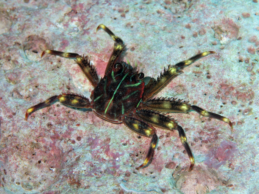『海の甲殻類』 (峯水亮)にトゲアシガニ属の一種として掲載されています。この本の出版が2000年とかなり古いので、今では名前がついているかもしれませんが、それを知る術がないのがちょっと悲しい。