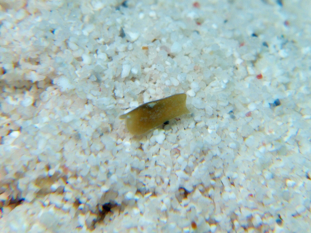 ウミウシらしき生き物が動いていたので撮ったのですが、3〜4oほどととても小さい個体でピントを合わせることができず、これ以上拡大するとぼやけてしまいます。そのために細部がどうなっているのかよく分かりません。