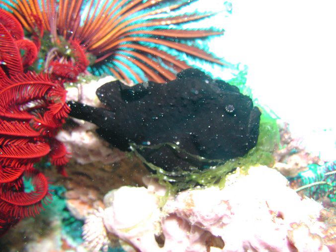 撮影 2003/03/10 フィリピン セブ島 リロアン ⇒アンコウの仲間 真っ黒けで、ただのカエルアンコウとどこが違うのか私にはゼンゼン分かりませんが、ベテランのガイドがそう言うのですから、そうなんでしょう。