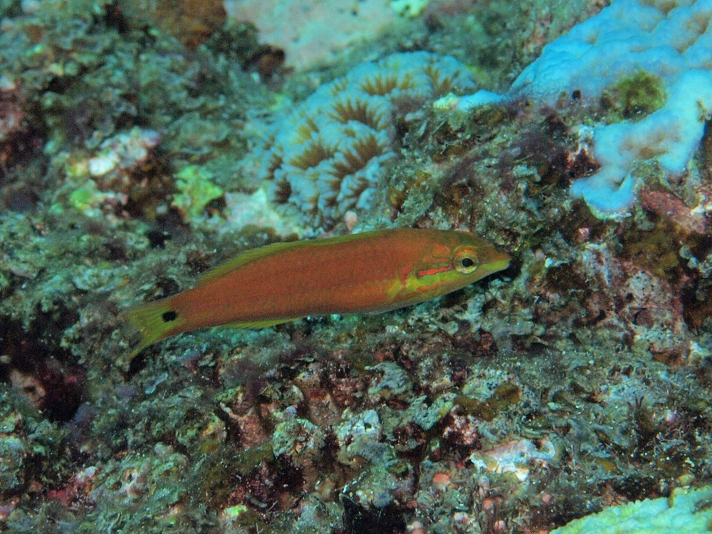 撮影 2014/10/03 沖縄県 石垣島 掲載 ⇒ベラの仲間 雌、幼魚、雄と掲載していますが、今回は若魚です。珍しくもない魚なのに、4枚目を掲載するというのは少々しつこい気がしますが、その通りしつこい性格です(今日、初めて自分の性格を悟りました)。