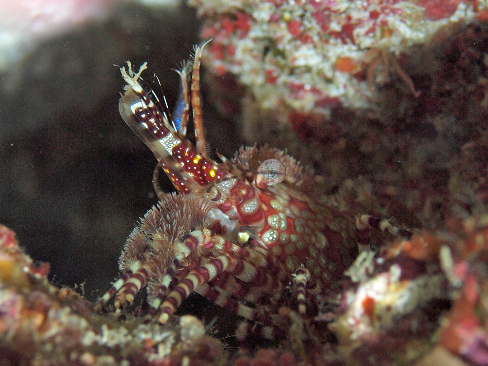 『ウミの甲殻類』(文一総合出版)によると、「斑紋が集合した複雑なモザイク模様があるが、個体による変異が多く、昼夜で変わる」そうです。
