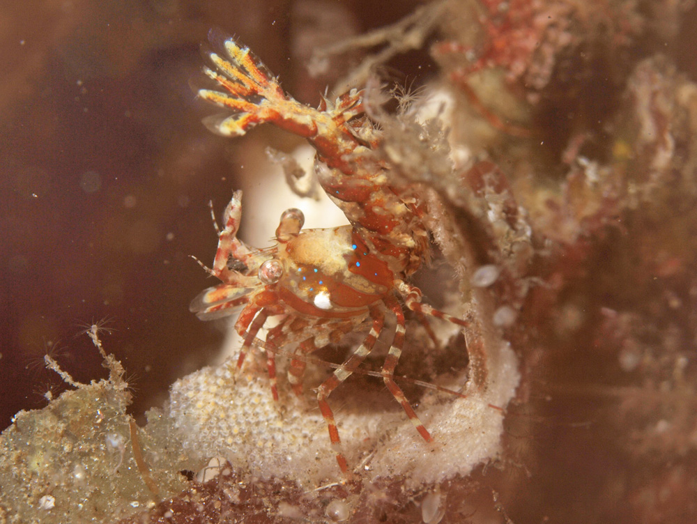 撮影 2010/08/21 北海道 羅臼 掲載 2015/02/18 ⇒エビの仲間 背中やお腹に青い斑点があるのが特徴です。でも最大の見ものは“エビ反り”のすごさだなあ。人間が一日中こんなにそっくり反っていたら、背中の筋肉がコリコリに凝ってしまうこと必定です。