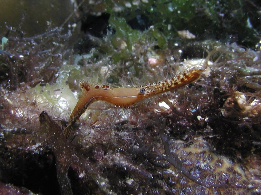 なかなか興味深い生物を見つけることができなくて、サブでついたベテランガイドがいろいろ教えてくれたのですが、エントリーして20分ほどしたところでこの被写体を発見。意気揚々と、という感じでボクを呼んで見せてくれました。