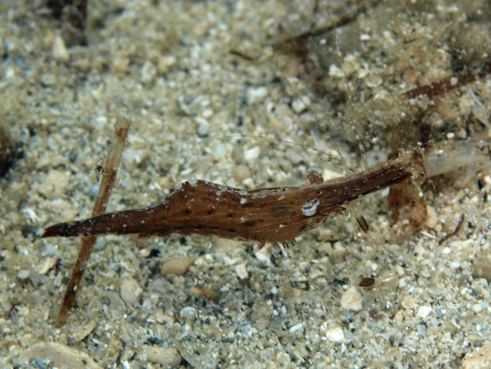 藻場にいるエビ。マイヒメ=舞姫という意味であろう和名からするともっと華麗なエビを想像しますが、実際は茶褐色の体色で、脚も触角も華麗さはゼロ。