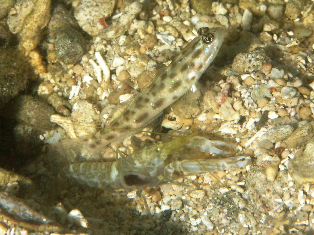 追記 2012/15/12 自然色に近い写真が撮れたので差し替えました。共生しているのはシノビハゼ属の一種。
