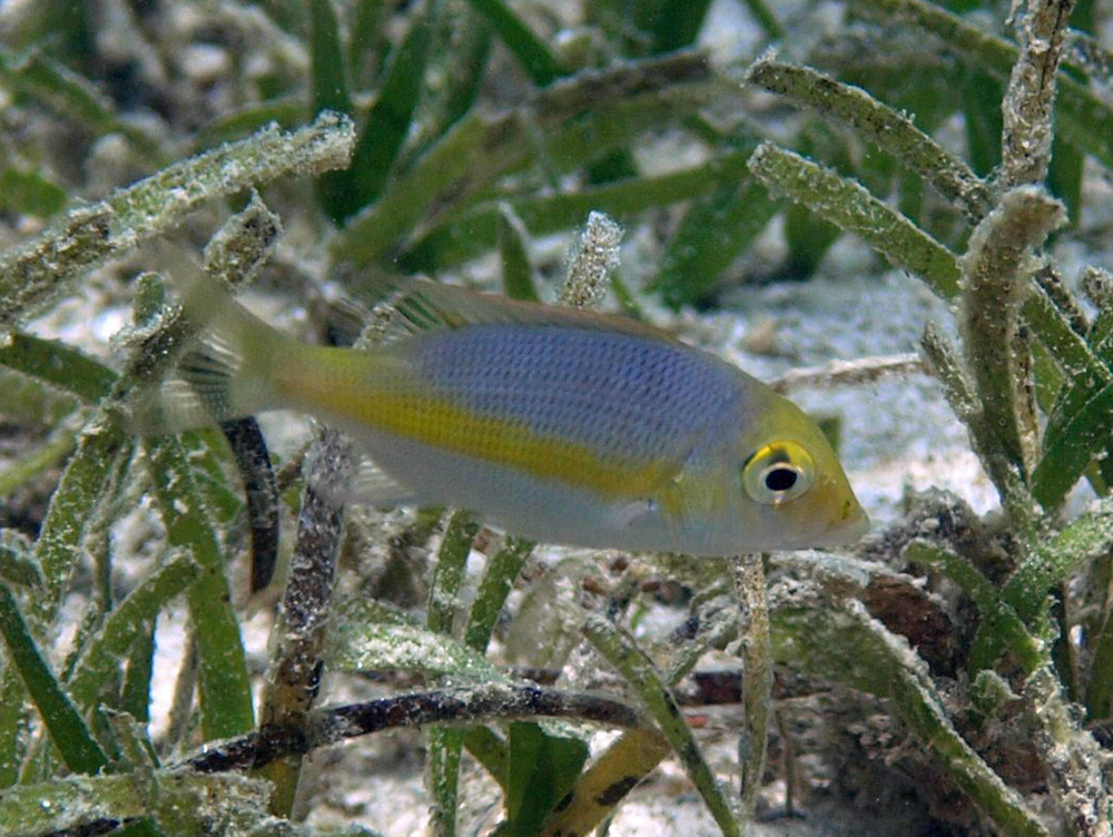 撮影 2009/08/01 沖縄県 石垣島 掲載 2014/05/09 ⇒フエフキダイの仲間 幼魚。といっても全長が15pはありました。成魚は50pにもなります。 ボクがいつも狙っているハゼやエビ・カニに比べるとフエフキダイの仲間はみんな大きいなあ。