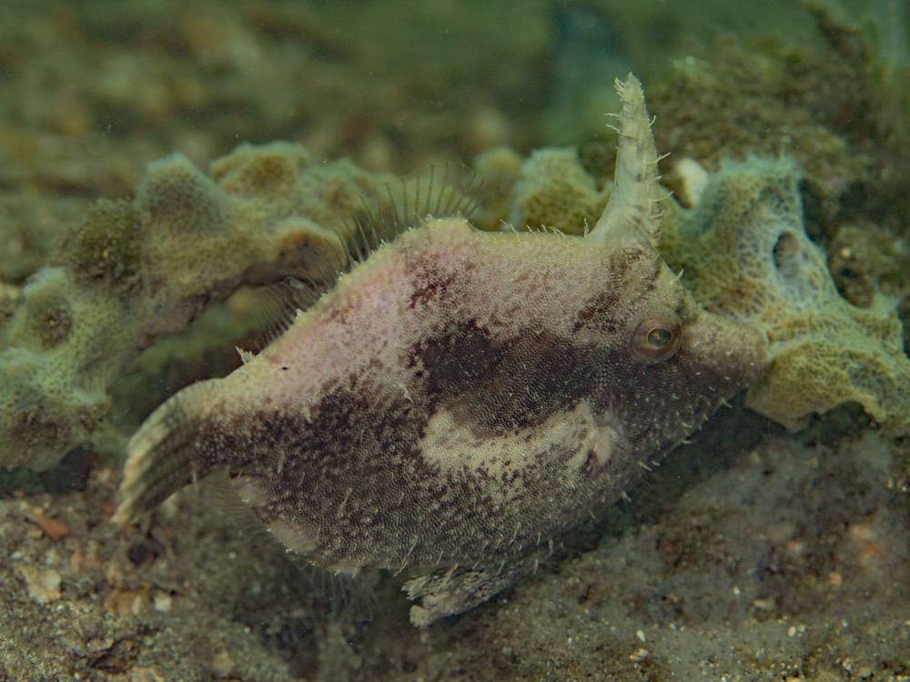 同じ日に撮った別のフチドリカワハギですが、こちらは皮に細かい襞模様(かな?)が入っているので追加しました。煙突が垂直にそびえていて、煙が出たら遠くまでたなびきそうです。