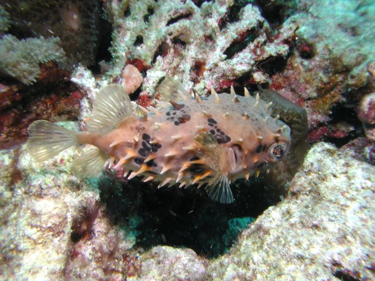 ハリセンボンと違うのは、棘を立てることができない点で、痛そうに見えますが、敵に対してはただの見掛け倒しなわけです。なんだハリボテなのか・・・そういうところがまたカワイさを増しますネ。