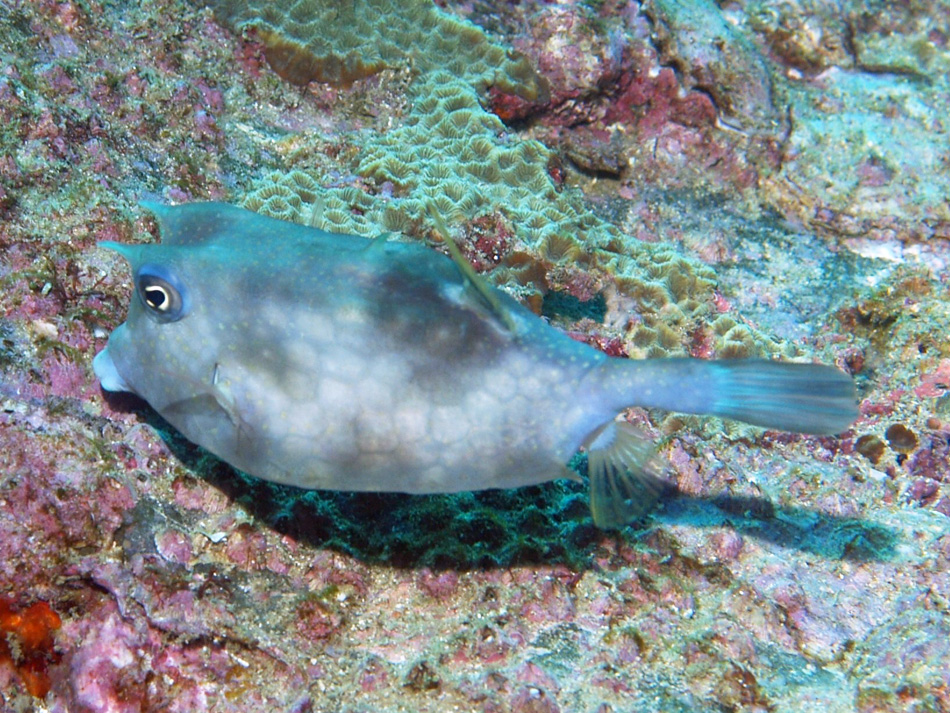 ハコフグ科の魚たちが愛嬌があると感じるには口先がキュンと突き出ていて、いかにもピーチクパーチクお喋りしているように見えるからでしょう。