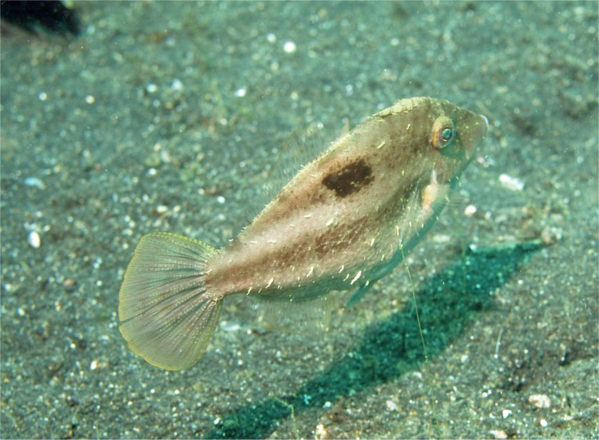 撮影 2007/06/04 インドネシア レンベ 掲載 2012/04/26 ⇒フグの仲間 雄。 オスのほうがスマートで、メスは幅広の体型です。 一応追加したけれど、斜め上から後ろ向きに撮るなんて、我ながら、カメラマンとしてはダメであります。