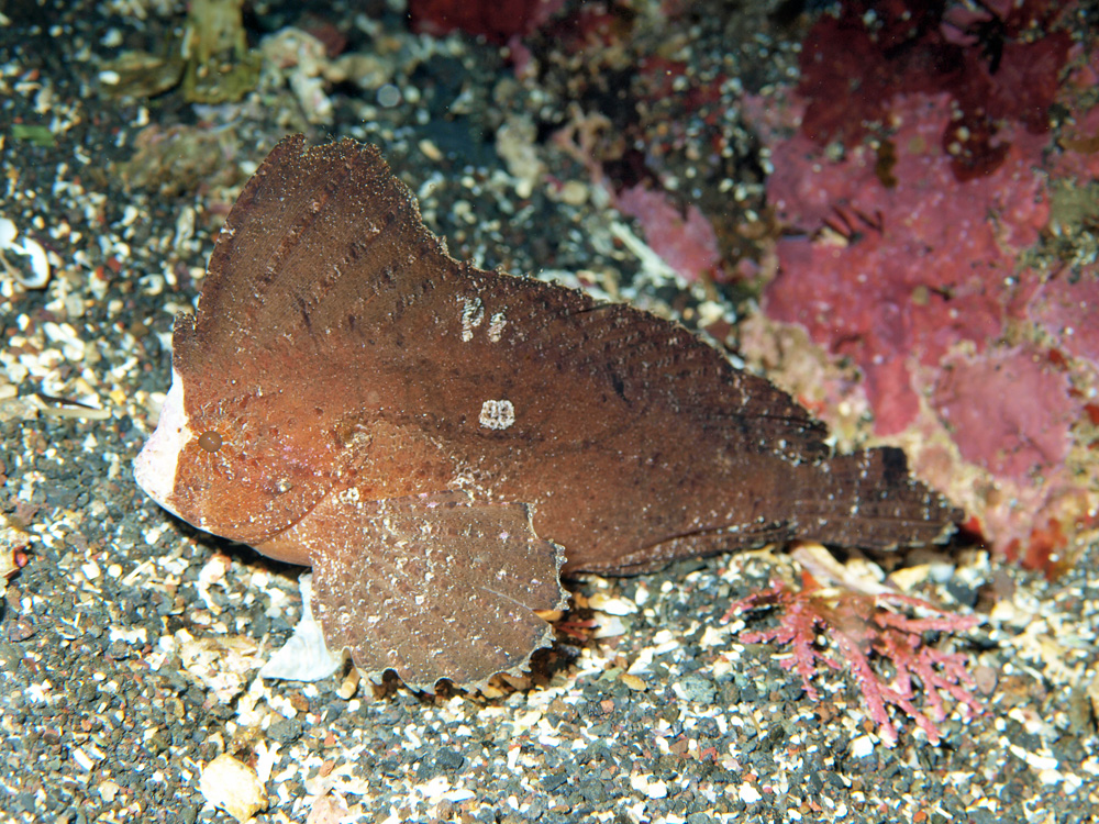 キョトンとした顔つきが可愛らしい上に、ダイバーが近づこうがストロボをピカピカ光らせようが微動だにしないのでボクでも頭部にピントが合うというありがたい魚です。