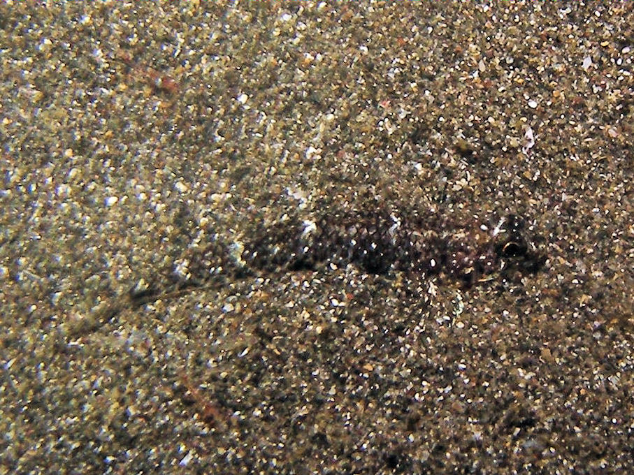 なお、この写真はナイトダイビングで撮影したもので、どういう理由かは分かりませんが上半身の一部が砂の中に埋もれています。
