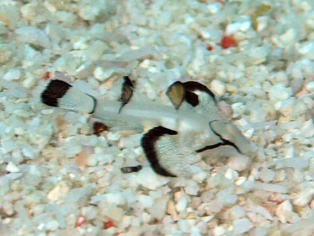 オキナワハゼ属としては抜群に清楚で美しい種類なのでいつか見たいものだと願っていましたが、マブールでかないました。しかも幼魚で、せいぜい2cmという全長。カワイイ!! この程度にしか撮れなかったのが残念です。