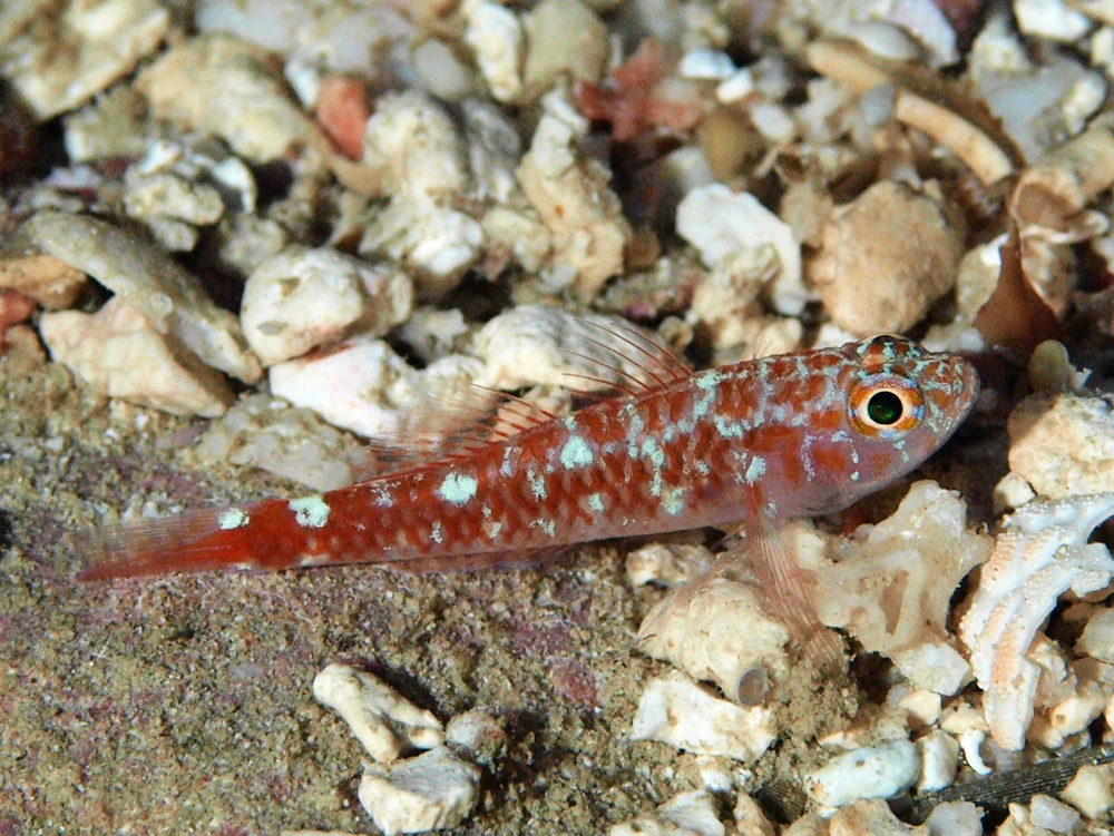 撮影 2008/12/05 沖縄県 石垣島 2001/12/21 沖縄県 石垣島 掲載 2013/03/27 ⇒ハゼの仲間 この真紅の装いはなかなか見事だったのですが、そこまでの色は出せていませんネ(ヘタクソ)。 追記 2013/12/05 やっとまともな写真が撮れたので差し替えました。