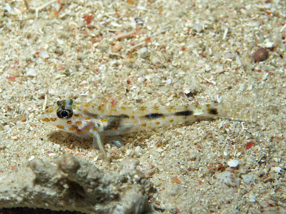 撮影 2008/04/07 沖縄県 石垣島 掲載 2012/08/25 ⇒ハゼの仲間 ハタタテサンカクハゼの幼魚を撮影したので追加掲載します。 成魚は第一背鰭の第一棘が長〜く伸びるのですが、こちらはまだ伸びかけで、普通のハゼよりちょっと長い程度です。