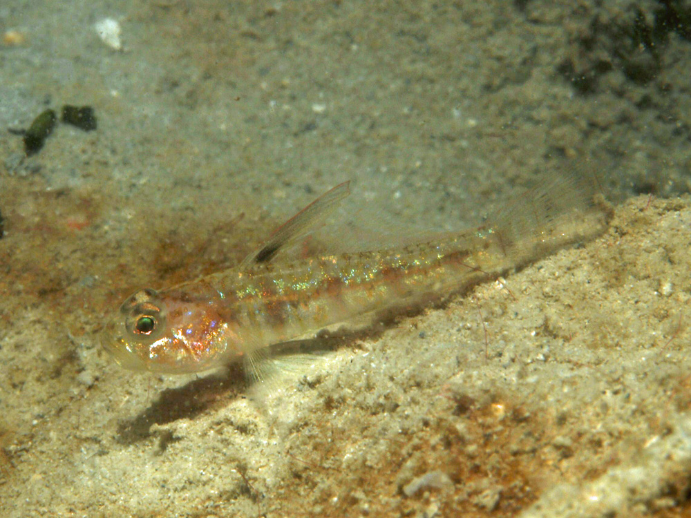 撮影 2008/07/15 沖縄県 石垣島 掲載 2013/01/26 ⇒ハゼの仲間 『日本のハゼ』 瀬能宏/矢野維幾/鈴木寿之/渋川浩一 (2004年初版 平凡社) 478ページにハゼ科の1種-12として掲載されています。 そこにはカラフルな2枚と地味な1枚が掲載されてて、この写真はカラフルな方と一致しています。