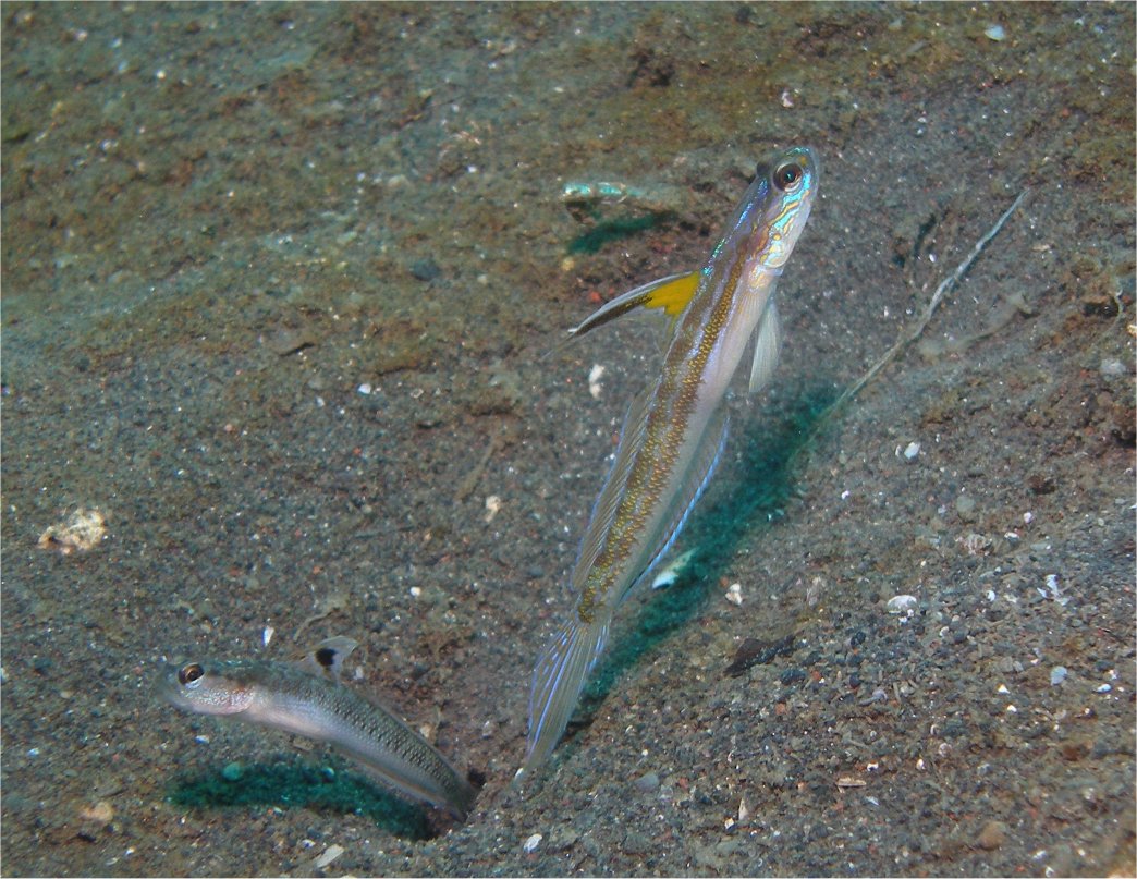 相手を過度に刺激しないようにソロソロと時間をかけて近づいて呼吸をなるべく穏やかにして静止していると、当初は警戒していたハゼがその警戒心を解き、巣穴から体を露出して日常生活を見せてくれます。その時間は、自分とハゼの呼吸がぴったりと一致した感のあるハゼ好きダイバーとしての至福の時間となります。(滅多にないんだよなー、これが・・・)