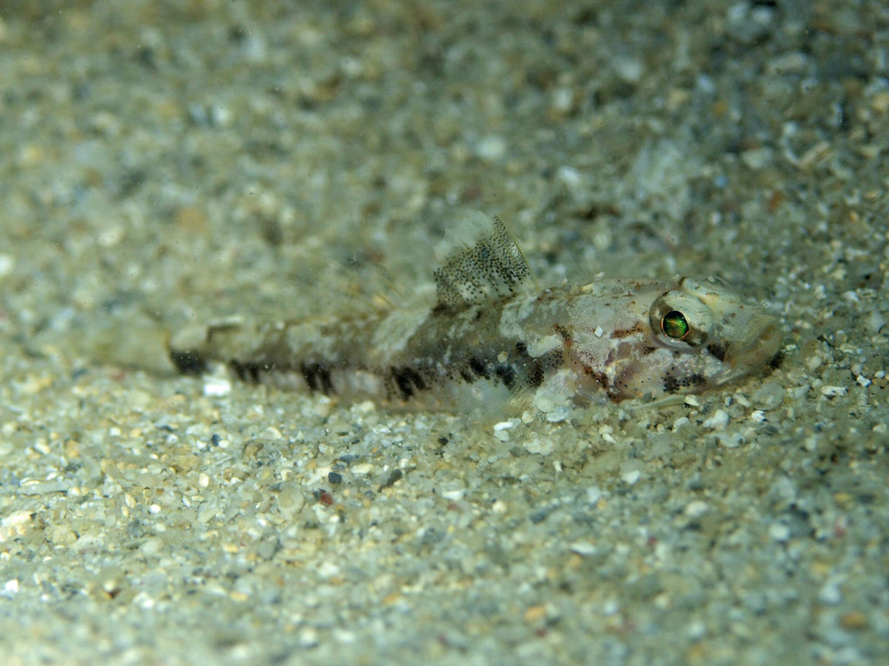 撮影 2013/07/08 沖縄県 沖縄島 掲載 2016/10/02 ⇒ハゼの仲間 既掲載写真は『日本のハゼ』 瀬能宏/矢野維幾/鈴木寿之/渋川浩一 (2004年初版 平凡社)にヨリメハゼ属の1種-3として掲載されている写真の下段の方と同じ模様で、こちらは上段の方と同じです。