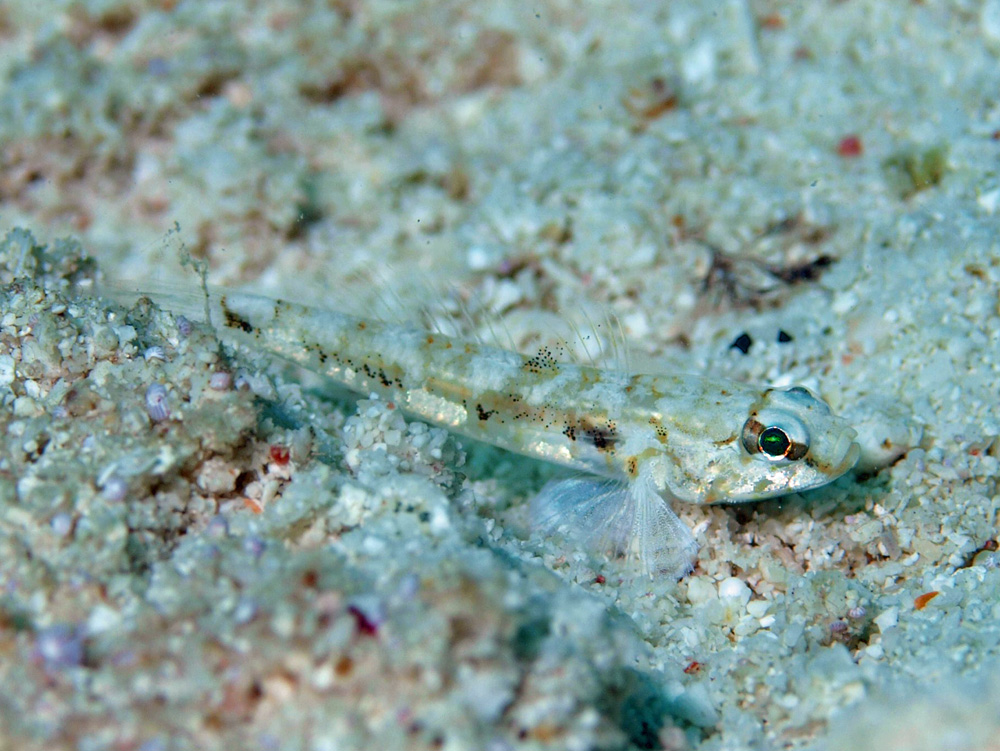 撮影 2009/06/16 沖縄県 竹富島 掲載 2014/01/26 ⇒ハゼの仲間 内湾のサンゴ片からなる砂底にいました。 『日本のハゼ』 瀬能宏/矢野維幾/鈴木寿之/渋川浩一 (2004年初版 平凡社)にヨリメハゼ属の1種-3として掲載されています。