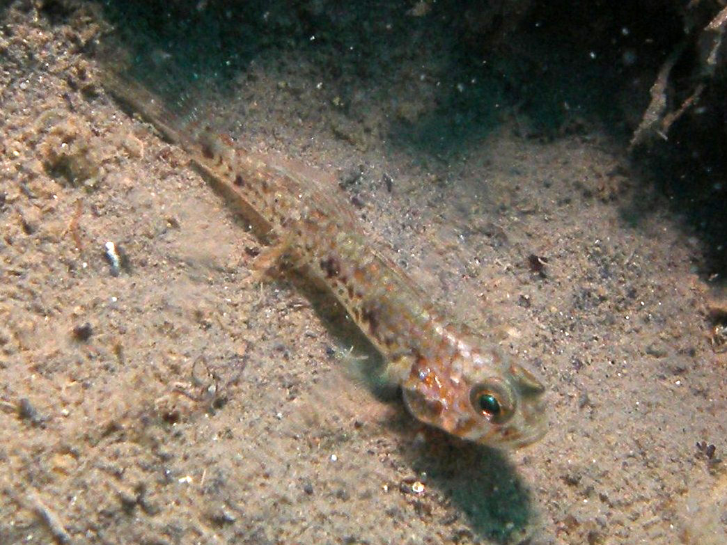 頬骨(と言うのかなー)がずいぶん出っ張っているのが眼を引きますが、いろいろ資料を当たってもそれらしい種類を見つけることはできませんでした。こういう環境だけに生息する珍しいハゼかも知れないのに…残念。