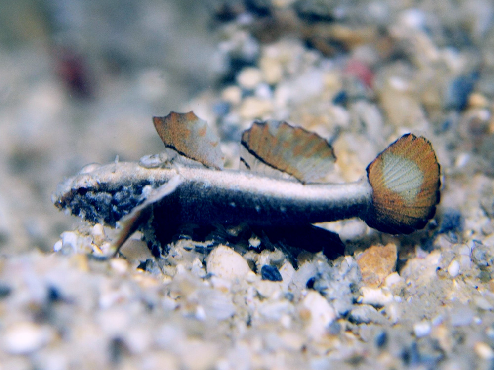 撮影 2013/07/30 沖縄県 沖縄島 掲載 2016/10/18 ⇒ハゼの仲間 1.5cmほどの幼魚です。成魚に比べるとずーっとシンプルな模様ですが、それでもなお神秘的な雰囲気を醸し出していて存在感があります。