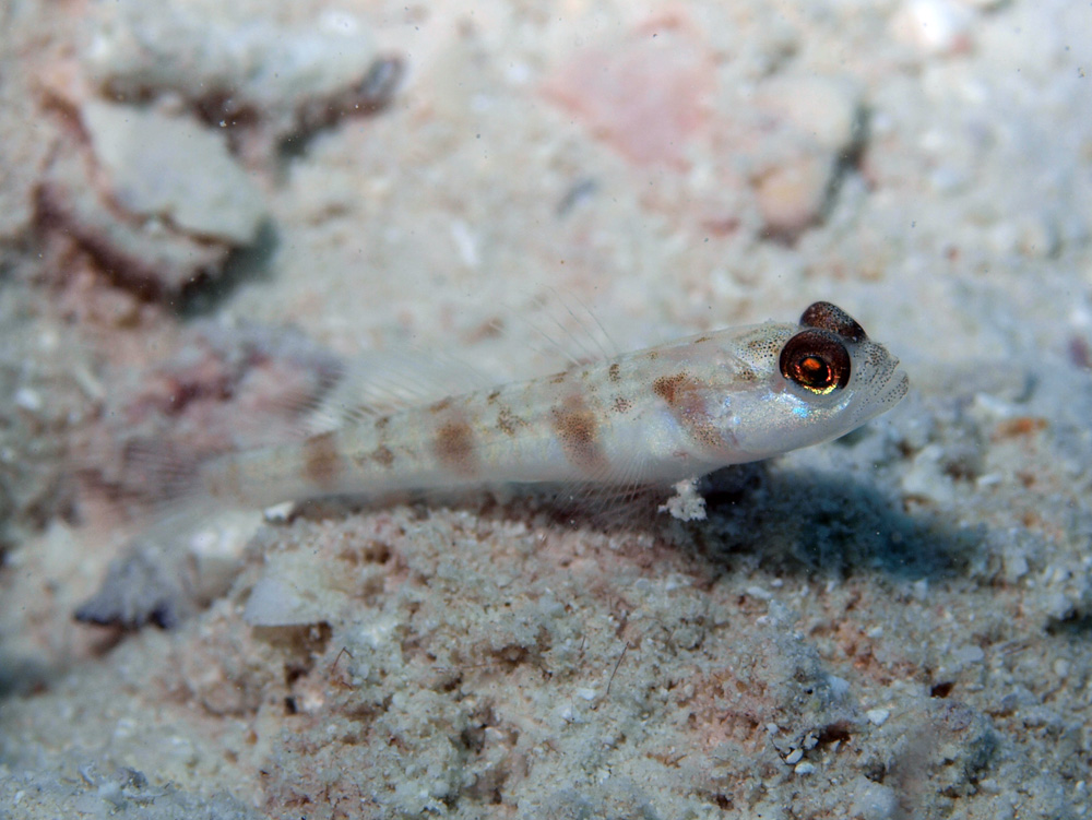 ダテハゼ属の、たとえばマスイダテハゼの子どもとかで当たらずとも遠からずだと思うのですが、そのあたりの幼魚の写真がないので特定できません。
