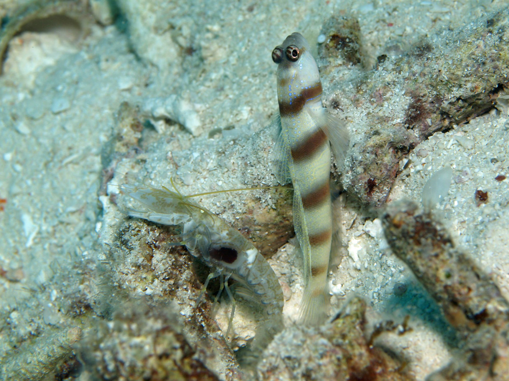 撮影 2008/06/13 沖縄県 黒島 掲載 2012/12/06 ⇒ハゼの仲間 モンツキテッポウエビとペアの写真が撮れたので追加しました。(正面からでなくて上後ろから接近してしまったので変な角度です。)
