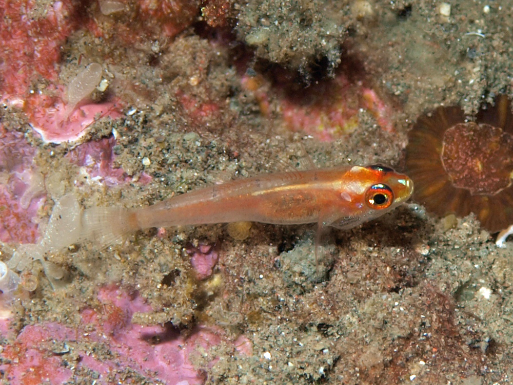 撮影 2009/10/04 インドネシア バリ島 掲載 2014/10/01 ⇒ハゼの仲間 体色が薄くて半透明の個体を撮ったので追加しました。 魚というものは同種でも熱帯地方の方が体色が濃いように思っていましたがそんなことはないんですね。根拠のない思い込みでした。